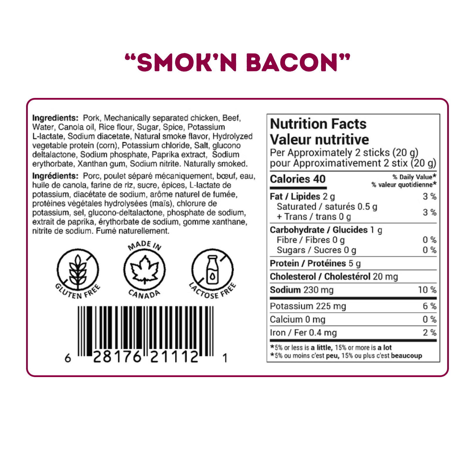 A delicious smoky flavour with the irresistible addition of bacon! These pepperoni stix are a fantastic source of high protein to keep you energized throughout the day!