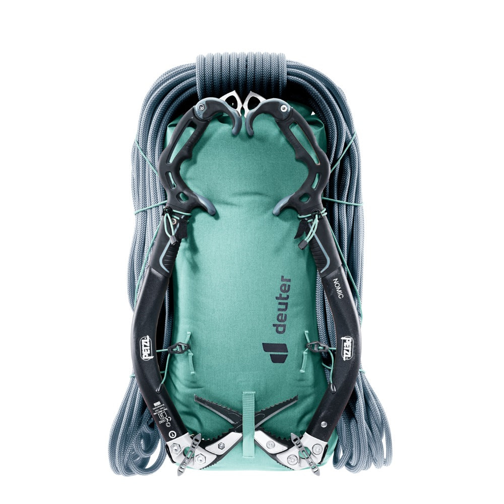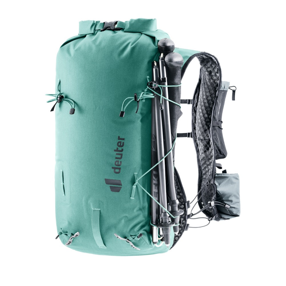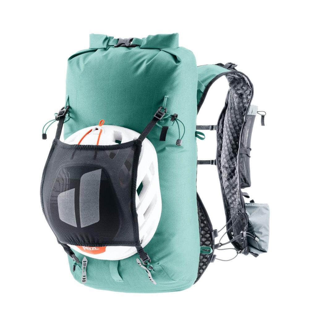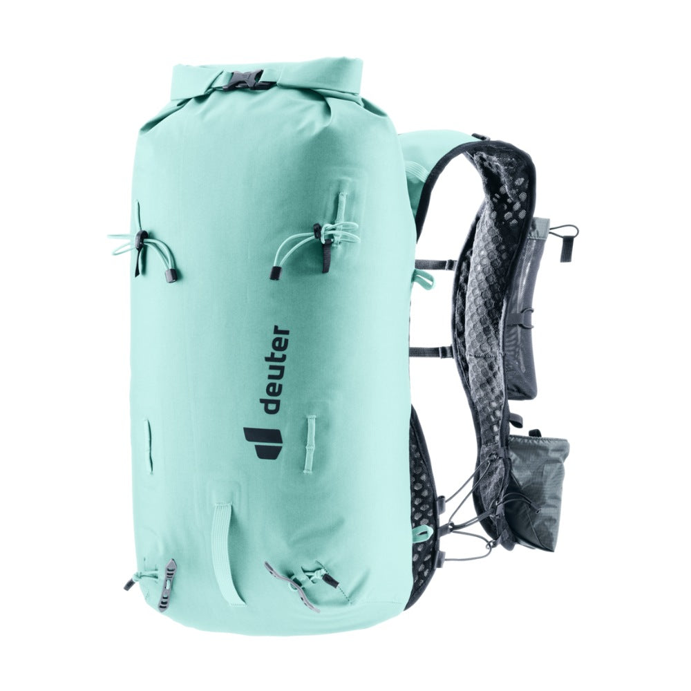 The hard-wearing material, lid construction, taped and welded seams, and TPU-coated zippers combine to protect contents from moisture in this lightweight alpine pack. The wide, vest-style shoulder straps and soft material against the back wrap around the torso to create a seamless fit and unrestricted freedom of movement – when pushing your limits over varied terrain. The vest-style carry system gives on-the-move access to essentials. And a bungee cord means you can switch gear around in no time, too.