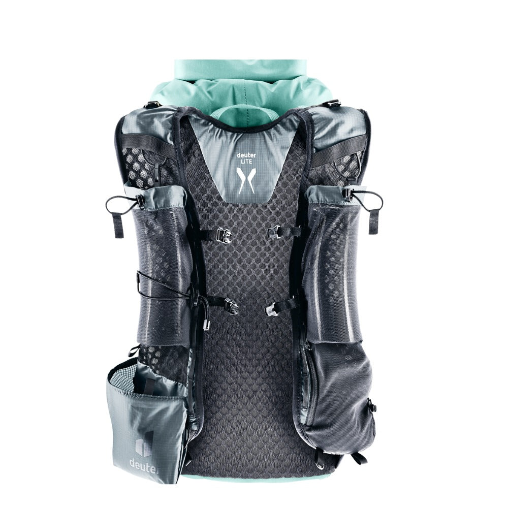 Two mesh soft-flask pouches on the shoulder straps