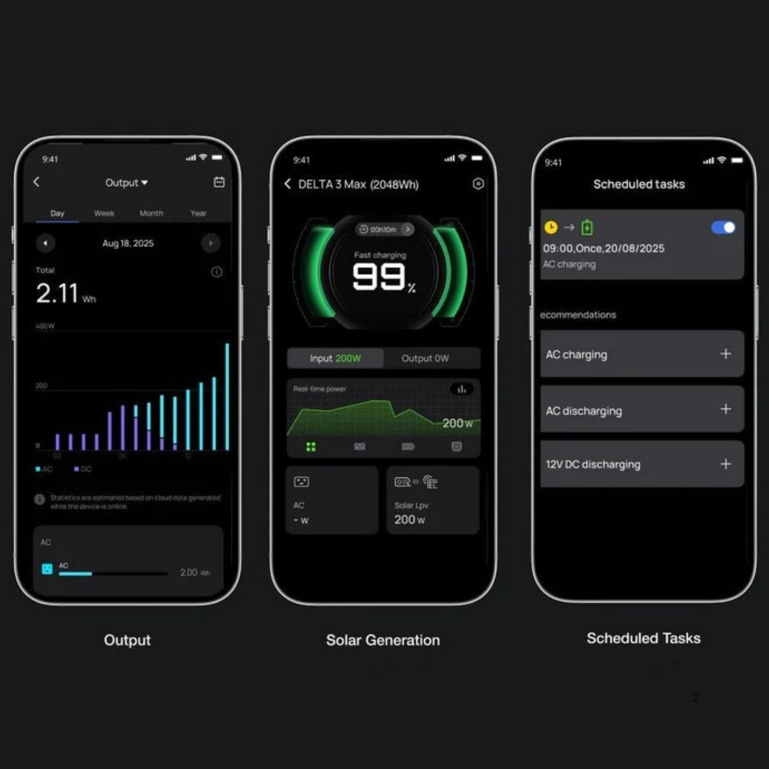 Monitor your energy usage and solar generation—all with one intuitive dashboard. Set timed charging/discharging missions so that you can charge during off-peak hours, discharge during peak rate periods to save costs.