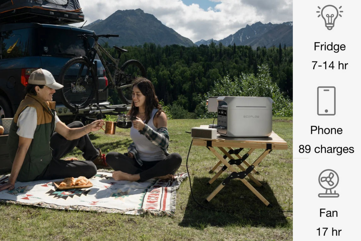 Completely imperceptible under 600W, blending with natural ambient noise (30 dB). Inside a tent or indoors, it won't disrupt sleep.