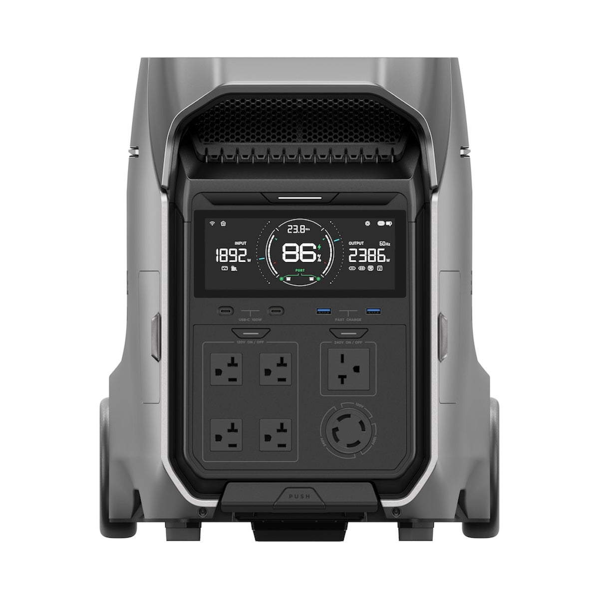 Reduce your dependance on the grid with the Delta Pro 3. Keep the essentials running - furnaces, water pumps, lights, and more. With a built in handle and wheel set, you can bring power wherever it is needed.
