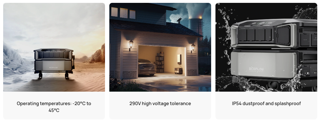 EcoFlow DELTA Pro Ultra tackles even the most grueling conditions. Whether it's extreme weather or freezing winters, this giant safeguards your power security, just like usual.