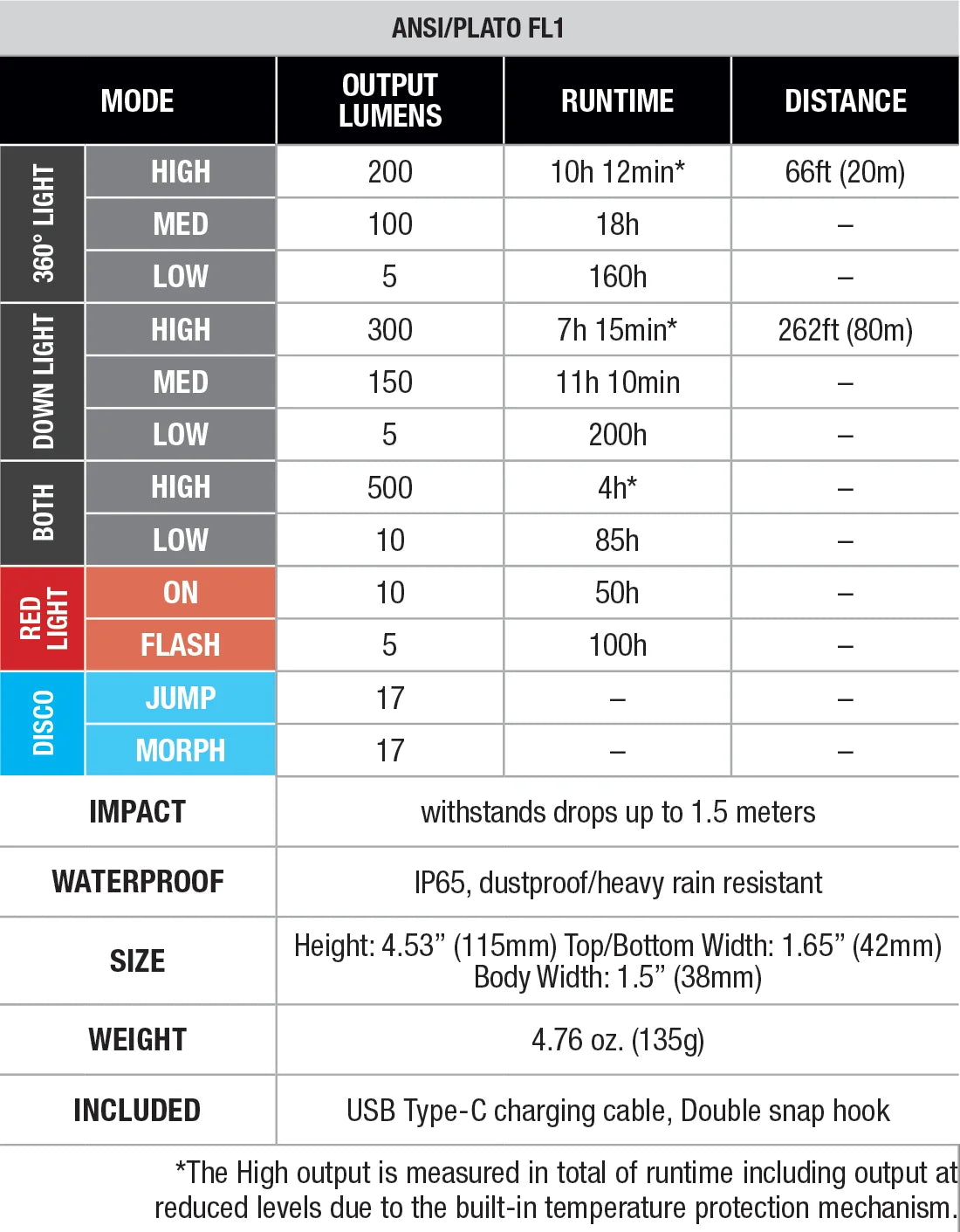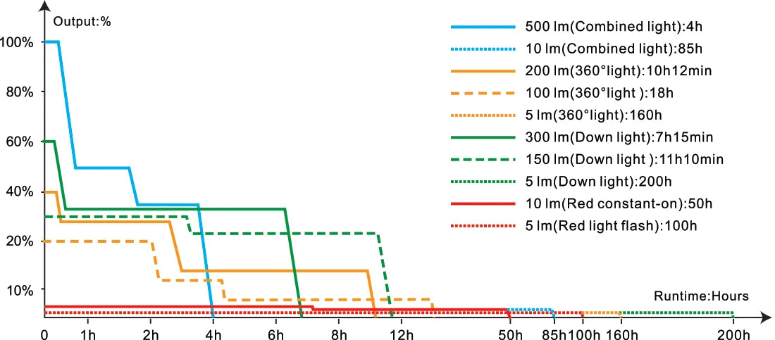 Built-in 2600mAh rechargeable battery with USB-C charging — No need for disposable batteries; recharge via USB-C in roughly 3 hours. Long runtimes — up to 200 hours on low settings — give you dependable light for extended trips or emergencies.