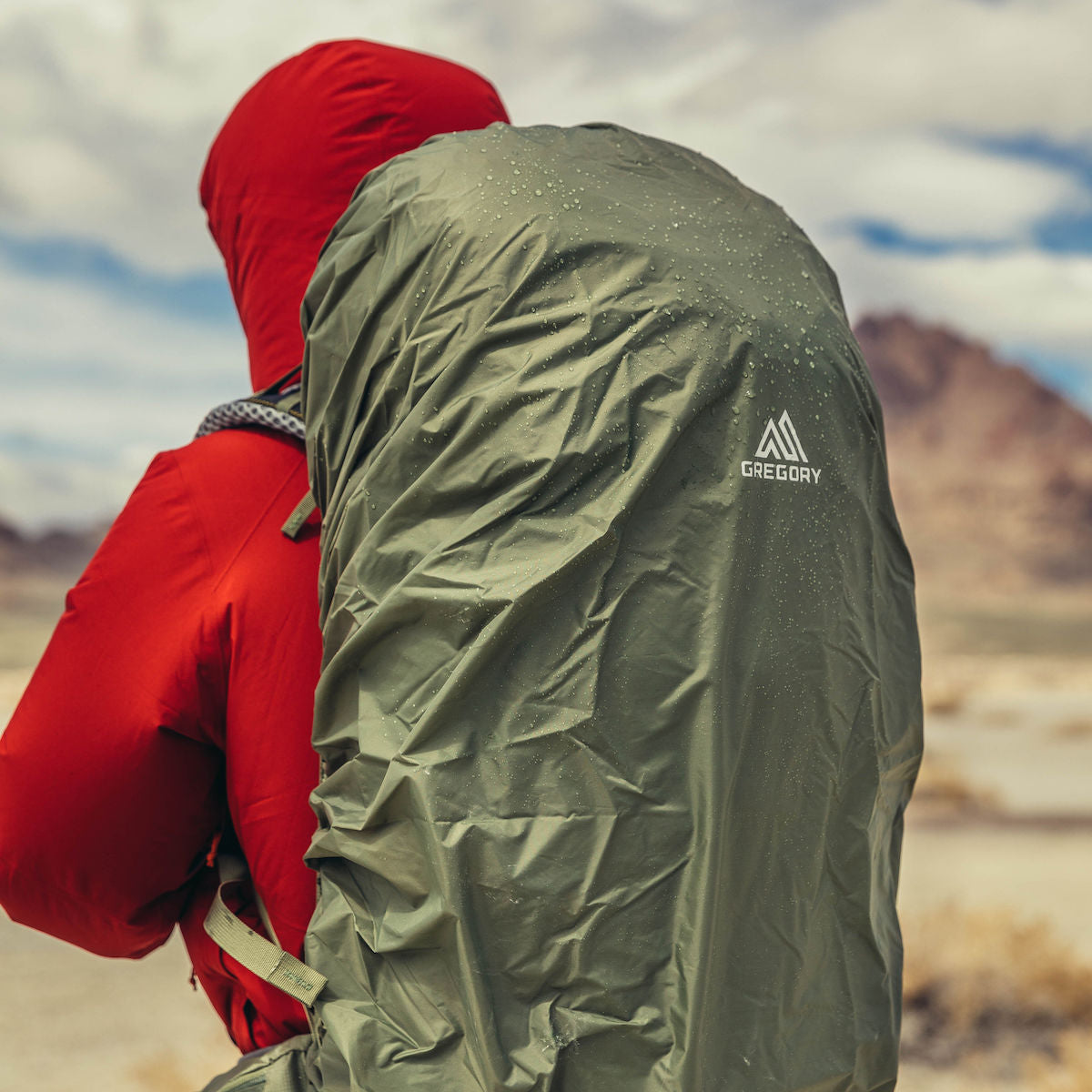 Raincover included in dedicated zippered pocket under top lid for added organization.