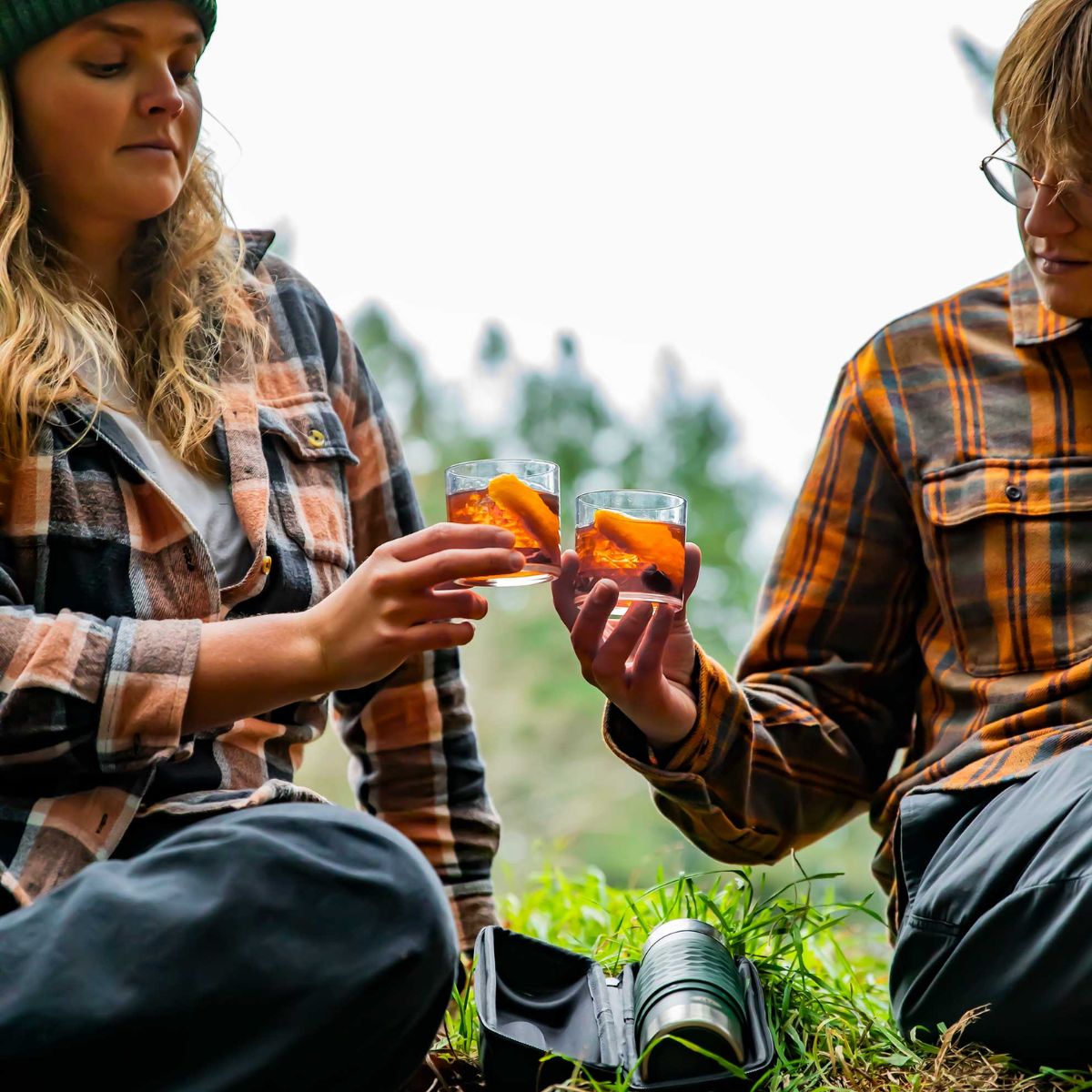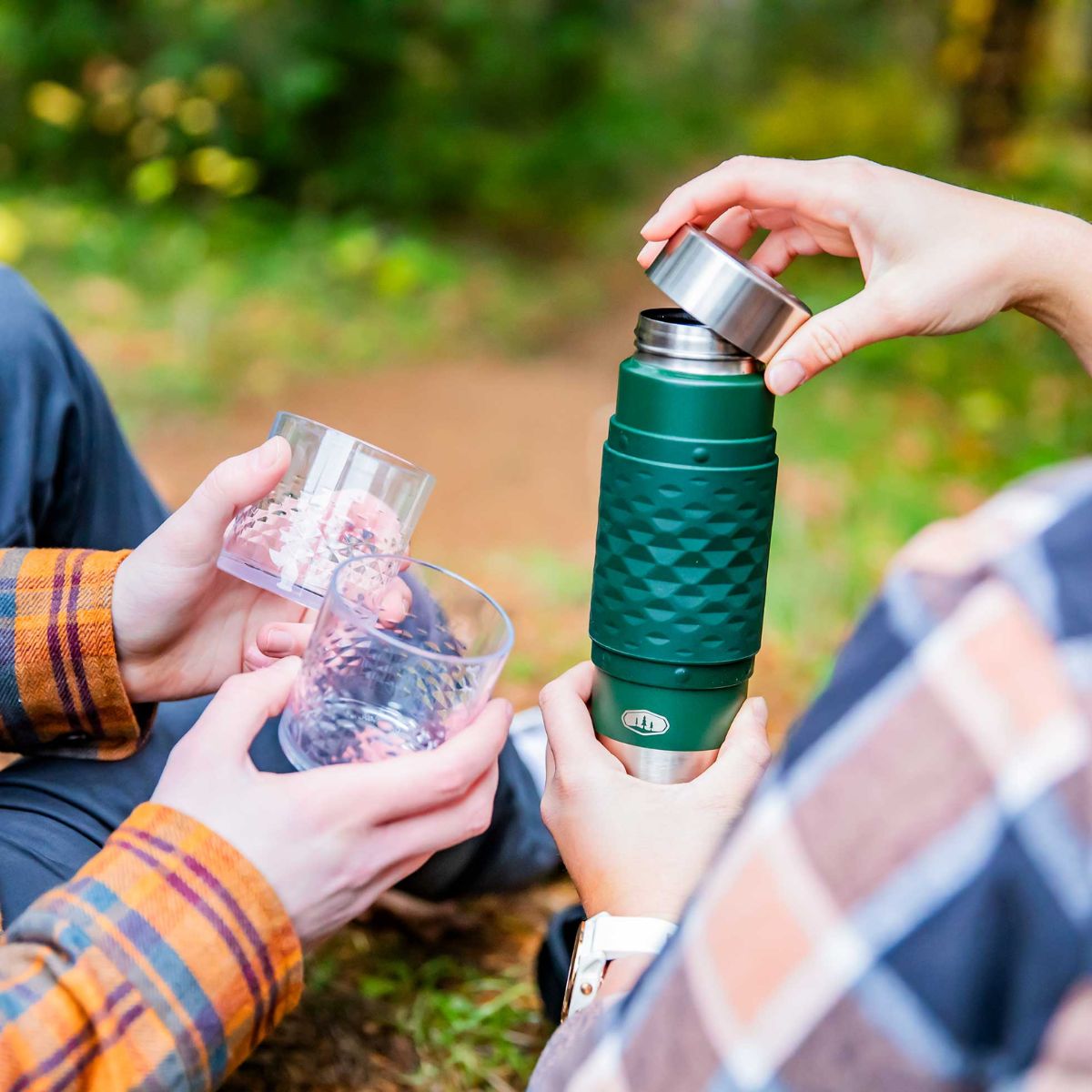 Designed for both style and practicality, the set features a nesting design with silicone grip for comfort. All nestled within a durable, hard foam case, this compact ensemble is ready for your favorite drinks on the go. Whether you're sharing sunsets or starry nights, make every sip memorable.