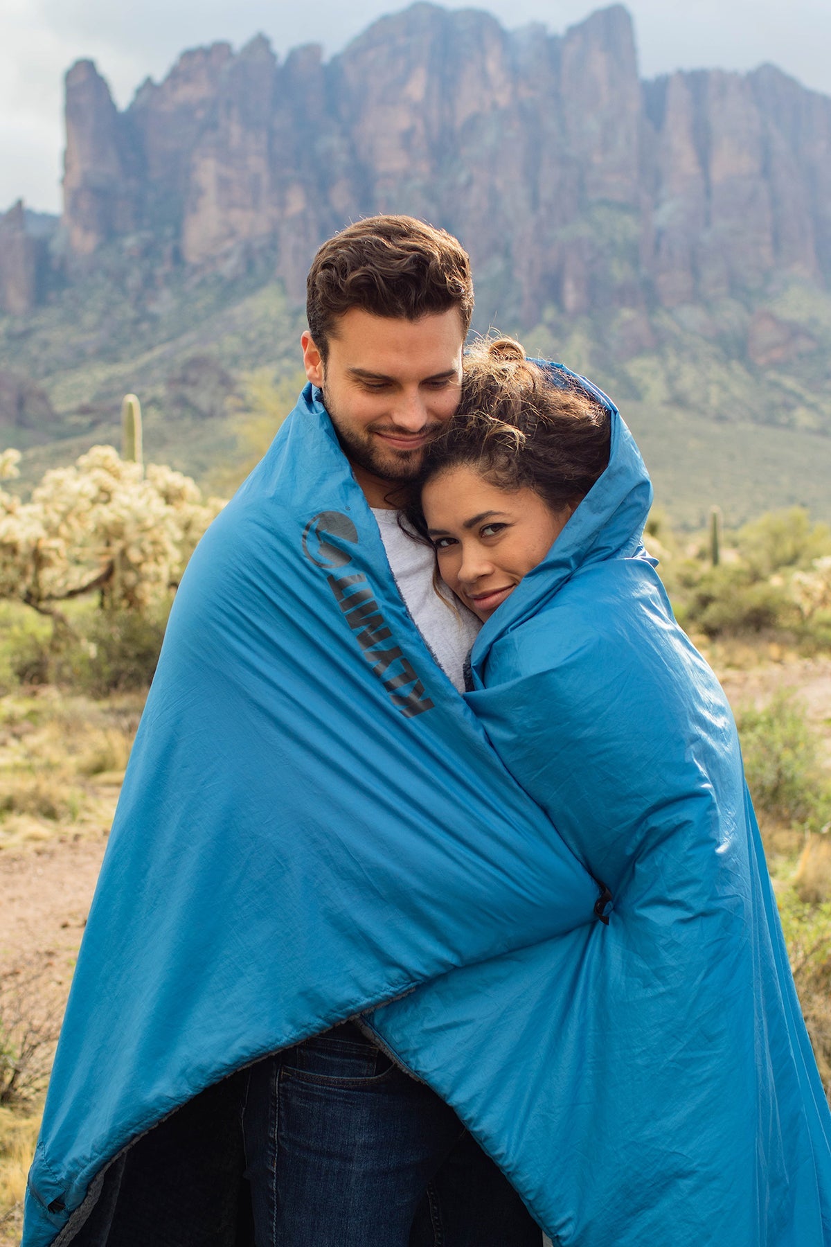 As a 58 x 80 inch blanket, it can completely surround one person, or be shared with a friend. Corner snaps, a cinch cord on one end and foot box on the other create a sleep system. Engineered for versatility. The outside soft touch ripstop serves as a barrier for the elements, while the soft fleece keeps you warm and cozy.