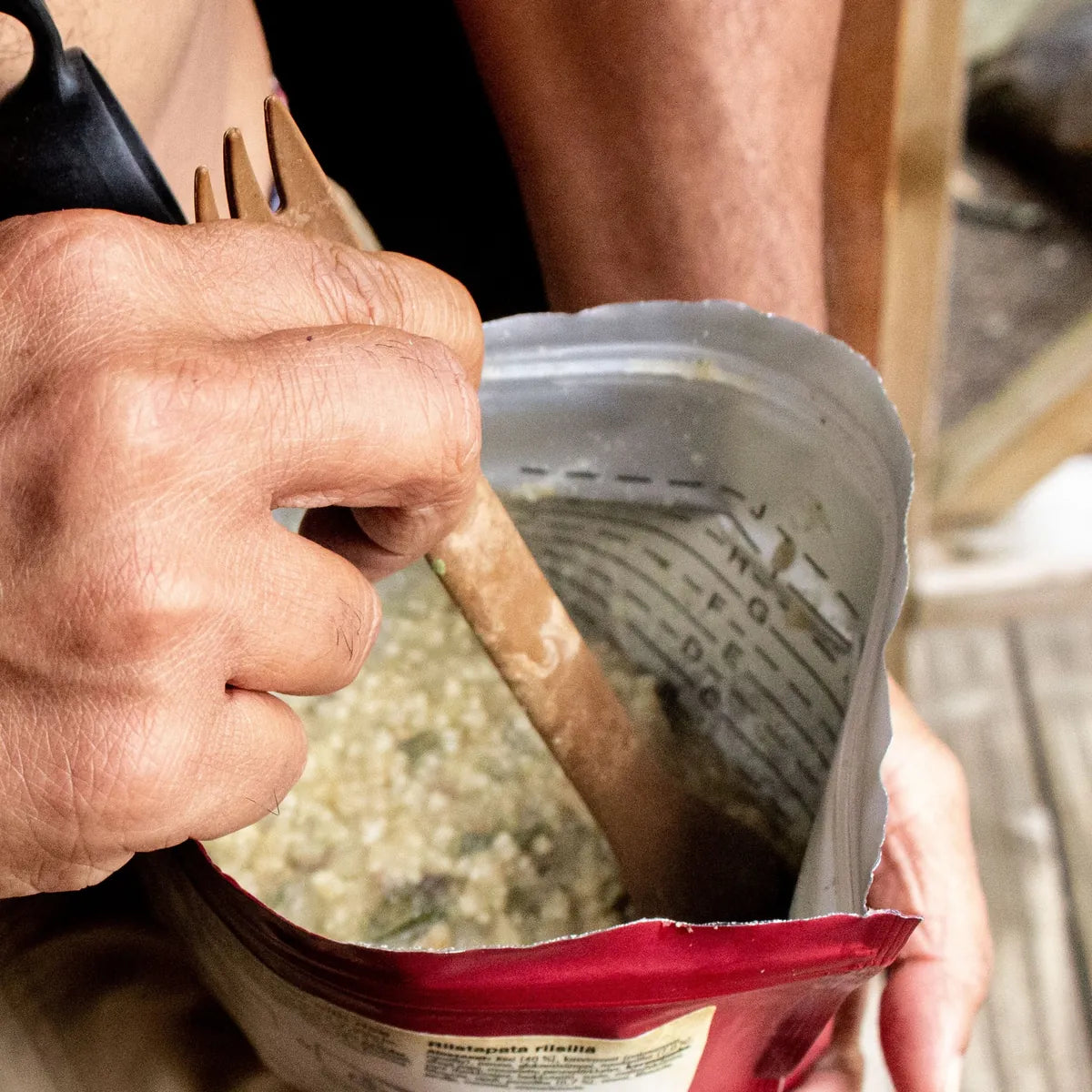 This versatile utensil works as both spoon and fork (spork) so you don’t need to carry separate cutlery. Easily tackle soups, stews, rice meals and more. Designed by Kupilka in Finland, it’s crafted using Kareline natural-fibre composite: 50 % softwood fibres from certified Finnish forests, 50 % food-grade polyolefins — giving it excellent durability, BPA-free and manufactured with carbon-neutral production.