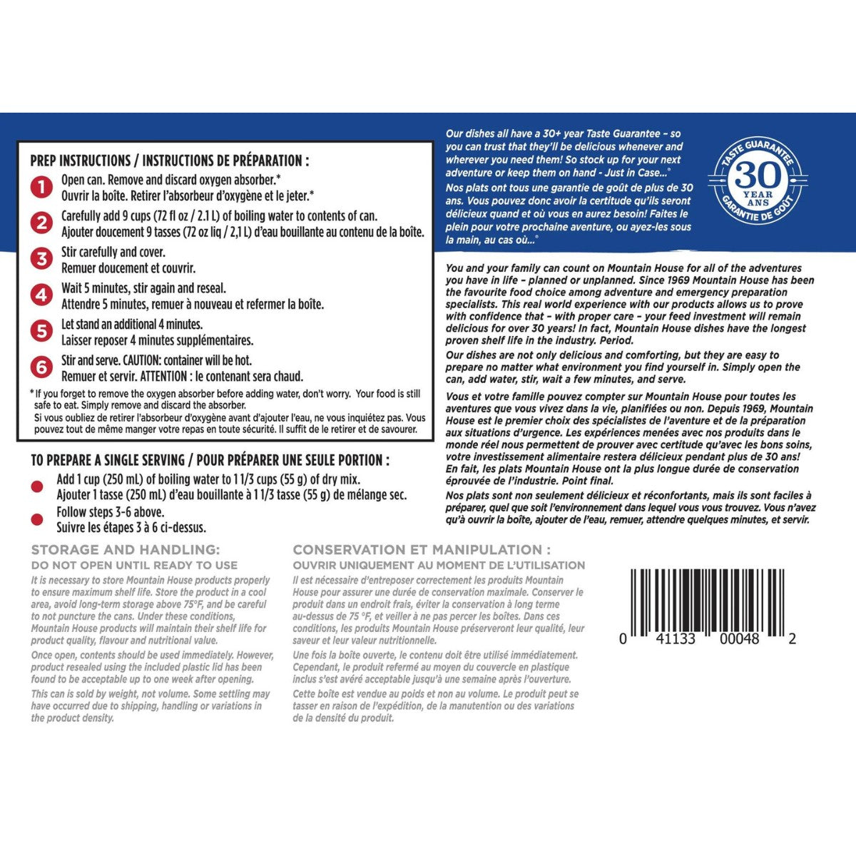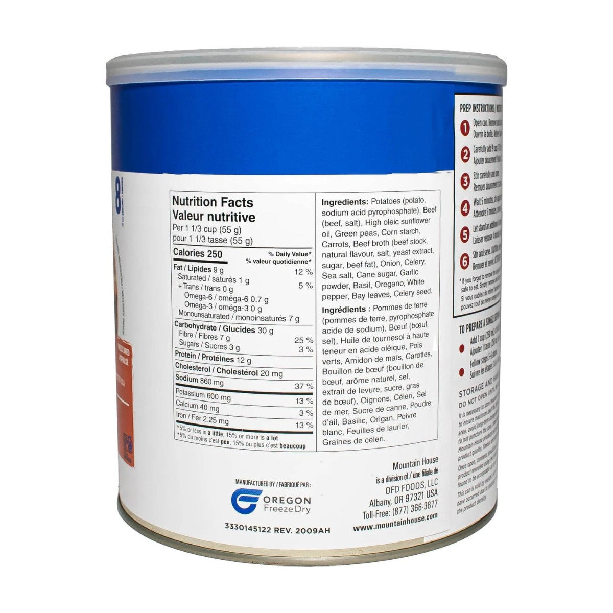 A blend of tender diced beef, carrots, peas and potatoes are sure to give you that warm, fuzzy feeling of satisfaction. Perfect for emergency food storage, feeding your family, or large groups, the Mountain House #10 cans have the longest proven shelf life in the industry. Backed by a 30-Year Taste Guarantee, have peace of mind knowing Mountain House has you covered for any situation that comes your way. From power outages to storms, or simply not wanting to cook, the #10 cans are a great solution to power you through.
