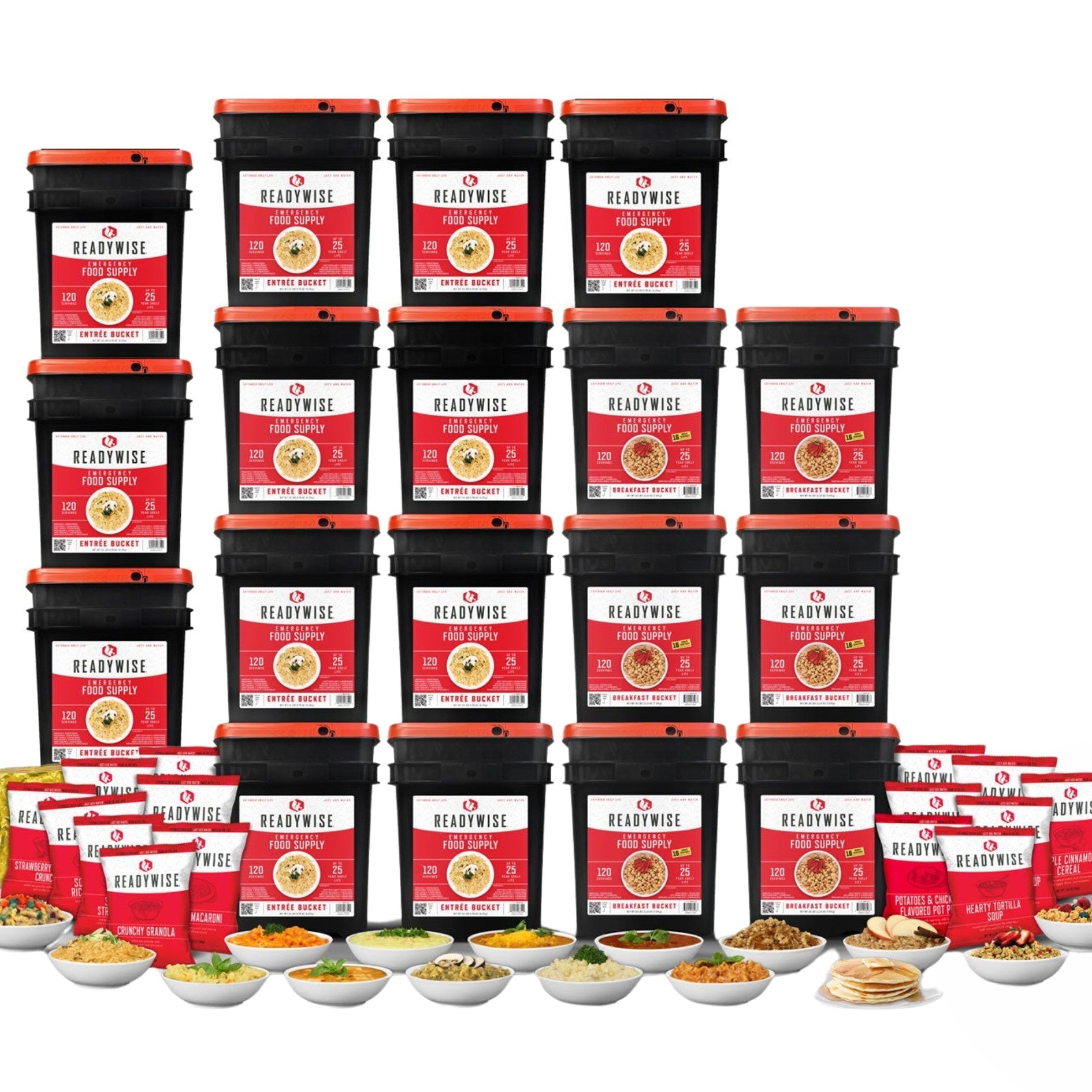 Prepare for any emergency or outdoor adventure with the ReadyWise 2160-Serving Emergency Food Package. This comprehensive bundle includes both a ReadyWise Breakfast Bucket and a ReadyWise Entree Emergency Food Bucket, designed to meet your needs for emergency preparedness, camping trips, and survival situations.